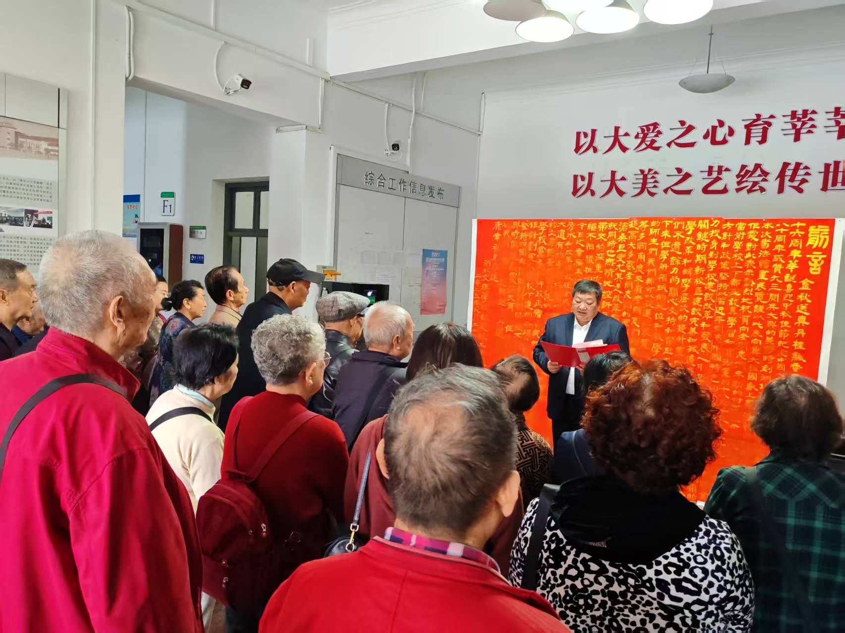 曹健在讲话中指出,广大老同志以笔墨抒怀,以书画言志,抒发了热爱生活、积极乐观、追求卓越的情感。这些作品不仅蕴含着对美的追求、对真的执着、对善的坚守,更饱含着对祖国山河的深情礼赞和对日常生活的无限热爱,已成为校园文化的重要组成部分。曹健寄语老同志,常回“家”看看,继续为学校的事业发展献计献策,共享学校事业发展的荣光。