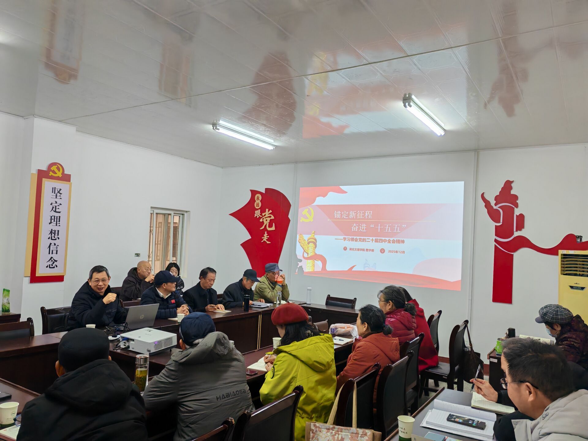 (离退休工作处 通讯员崔玲)为深入学习贯彻党的二十届四中全会精神,12月18日离退休党总支特邀马克思主义学院退休教授詹学德作《锚定新征程,奋进“十五五”——学习领会党的二十届四中全会精神》专题辅导报告。各校区离退休党支部委员、离退休处工作人员20余人参加学习。